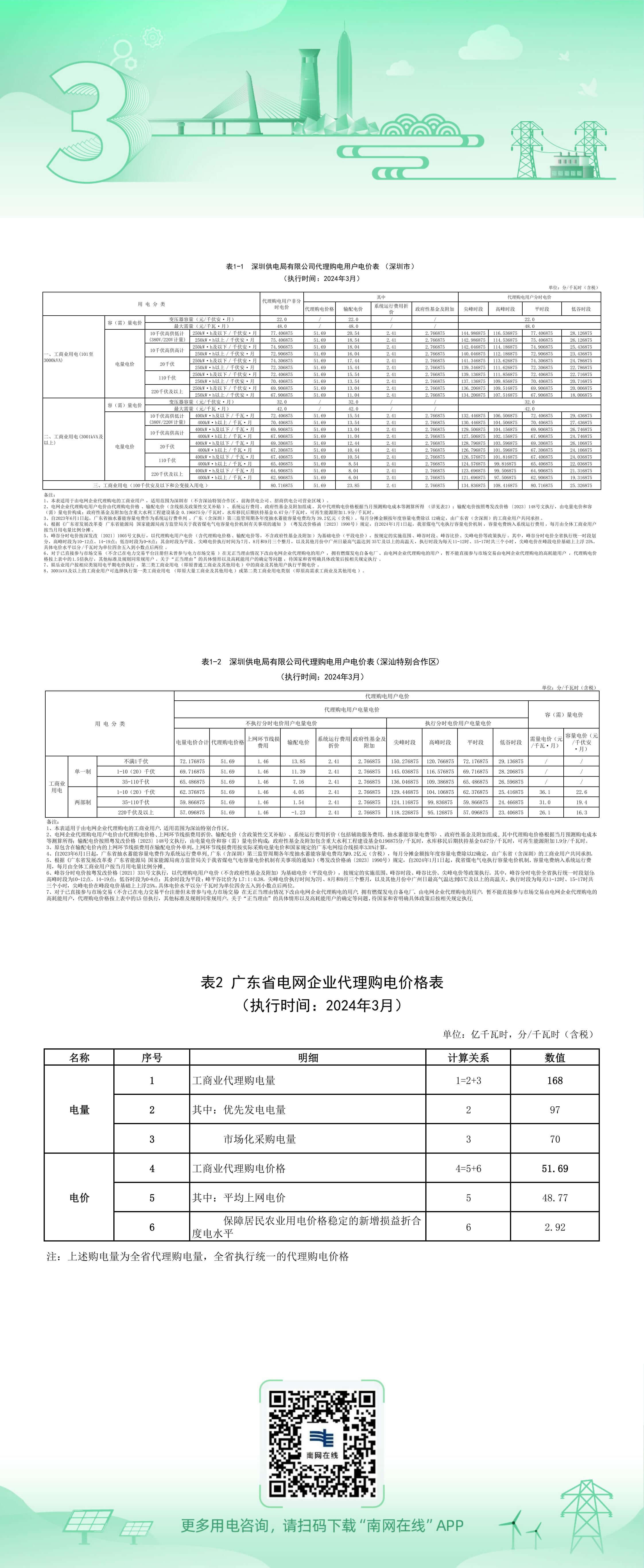 深圳3月份代理购电工商业用户电价表