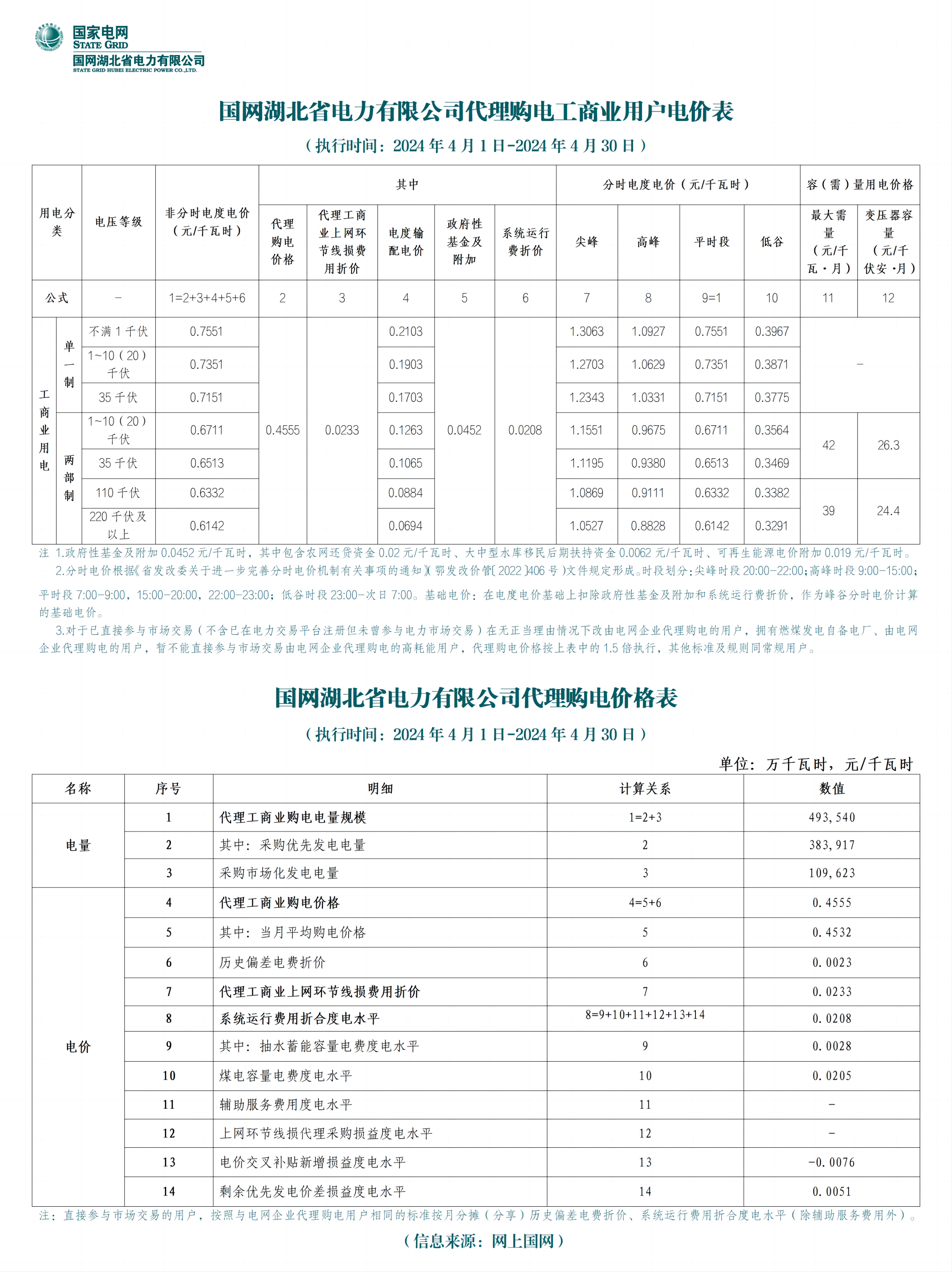 2024年4月份各省工商业电价(北京、天津、河北、山东、山西)