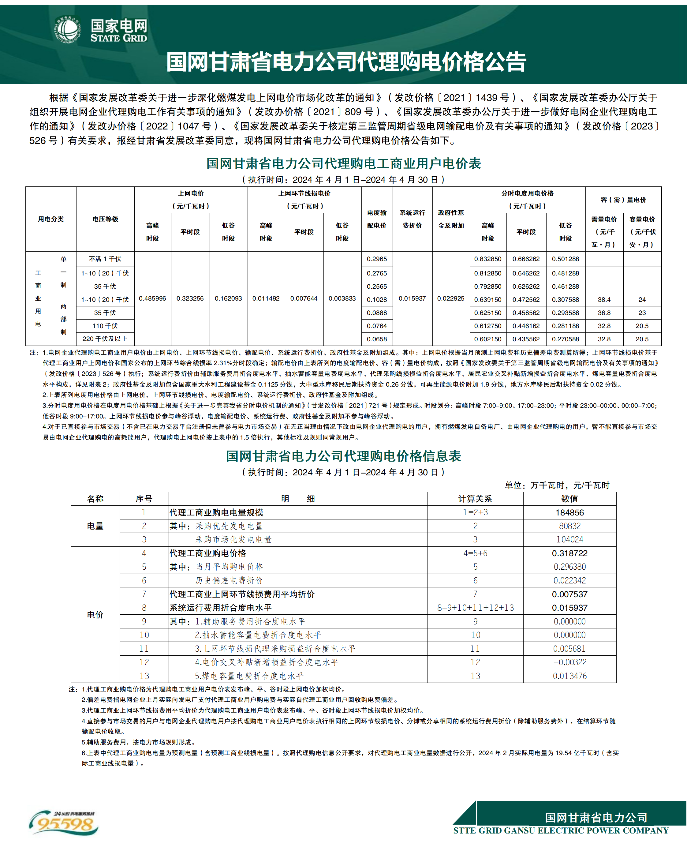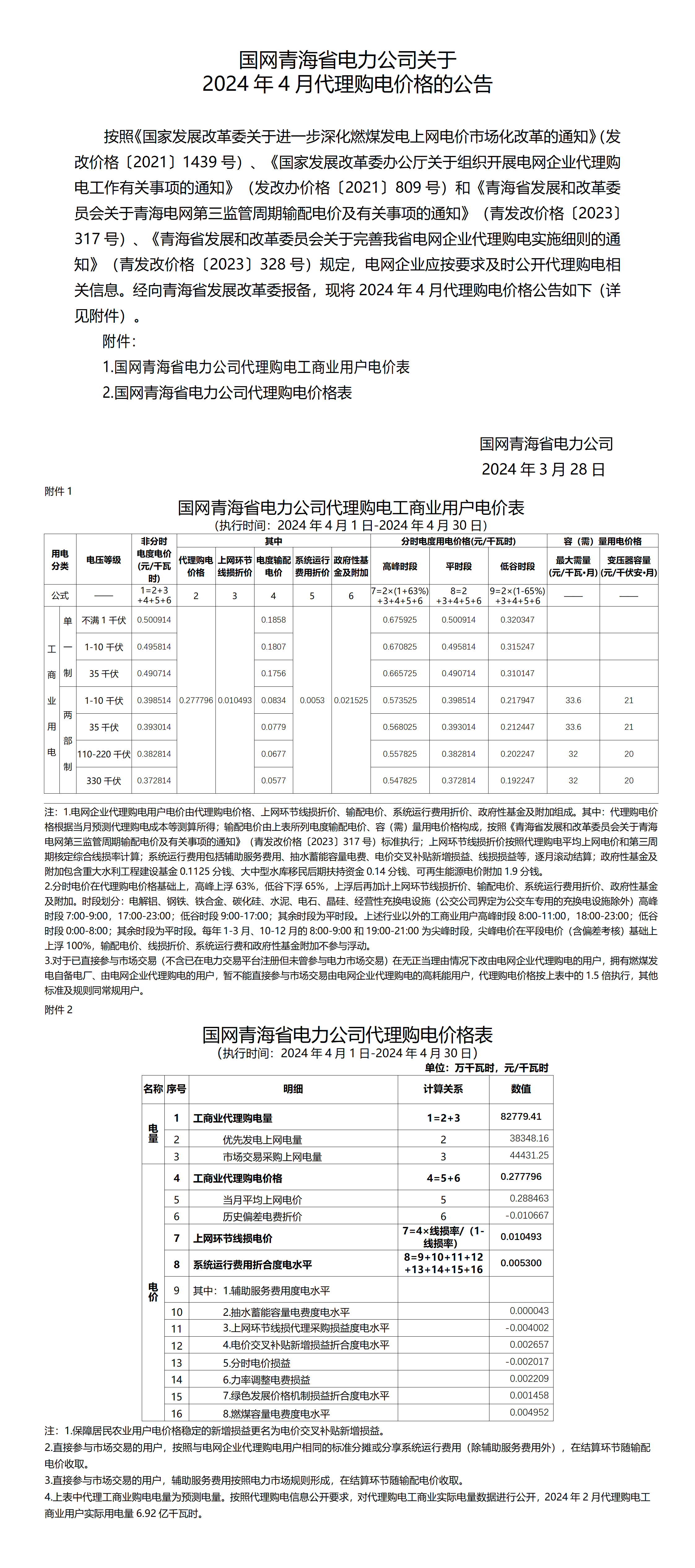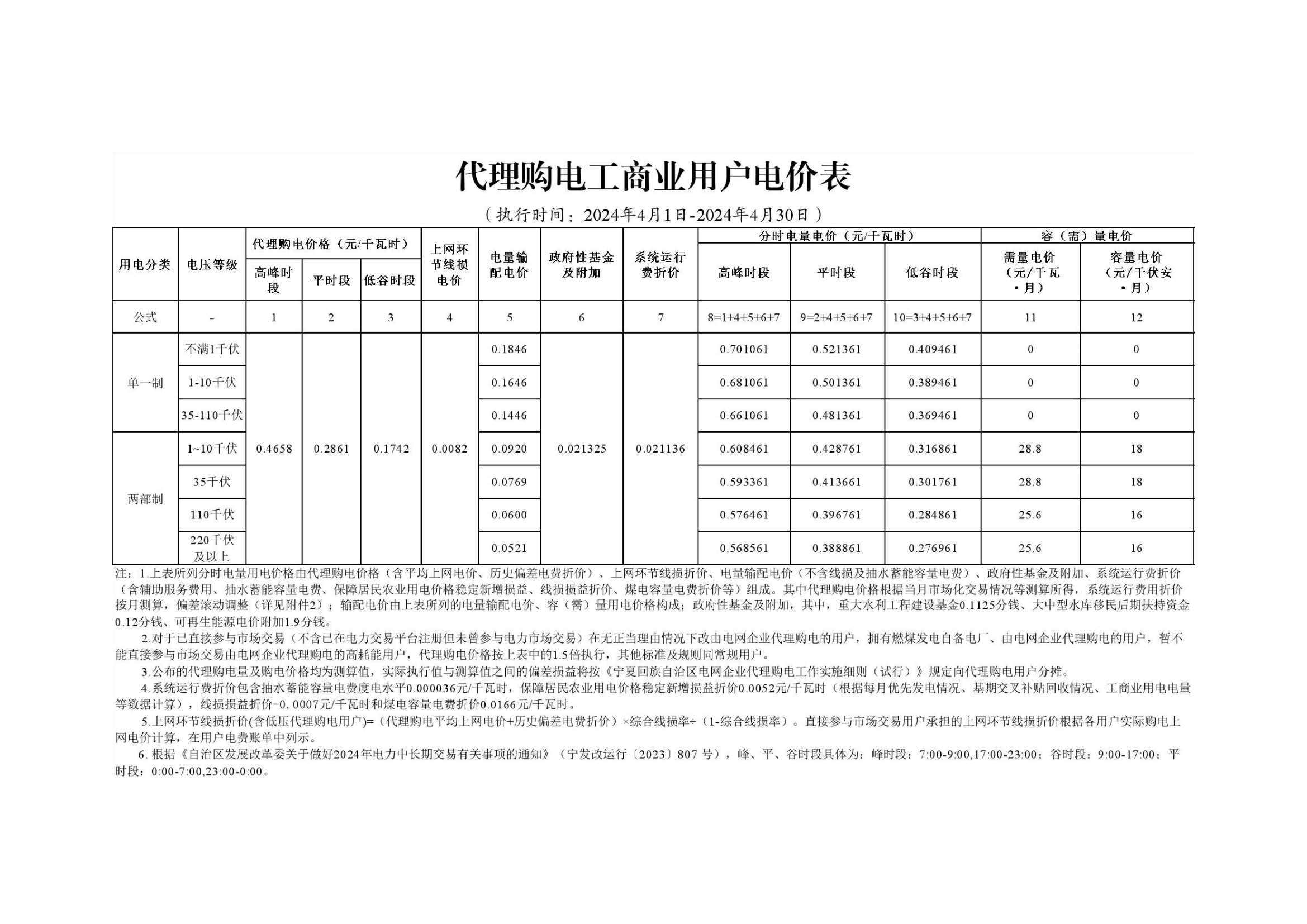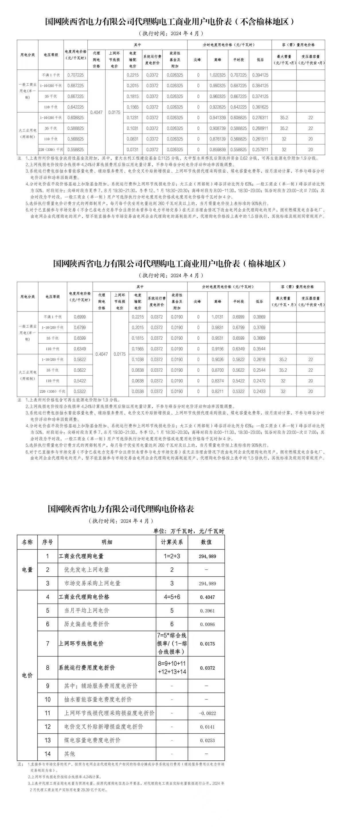 2024年4月份各省工商业电价(陕西、甘肃、宁夏、青海、新疆)