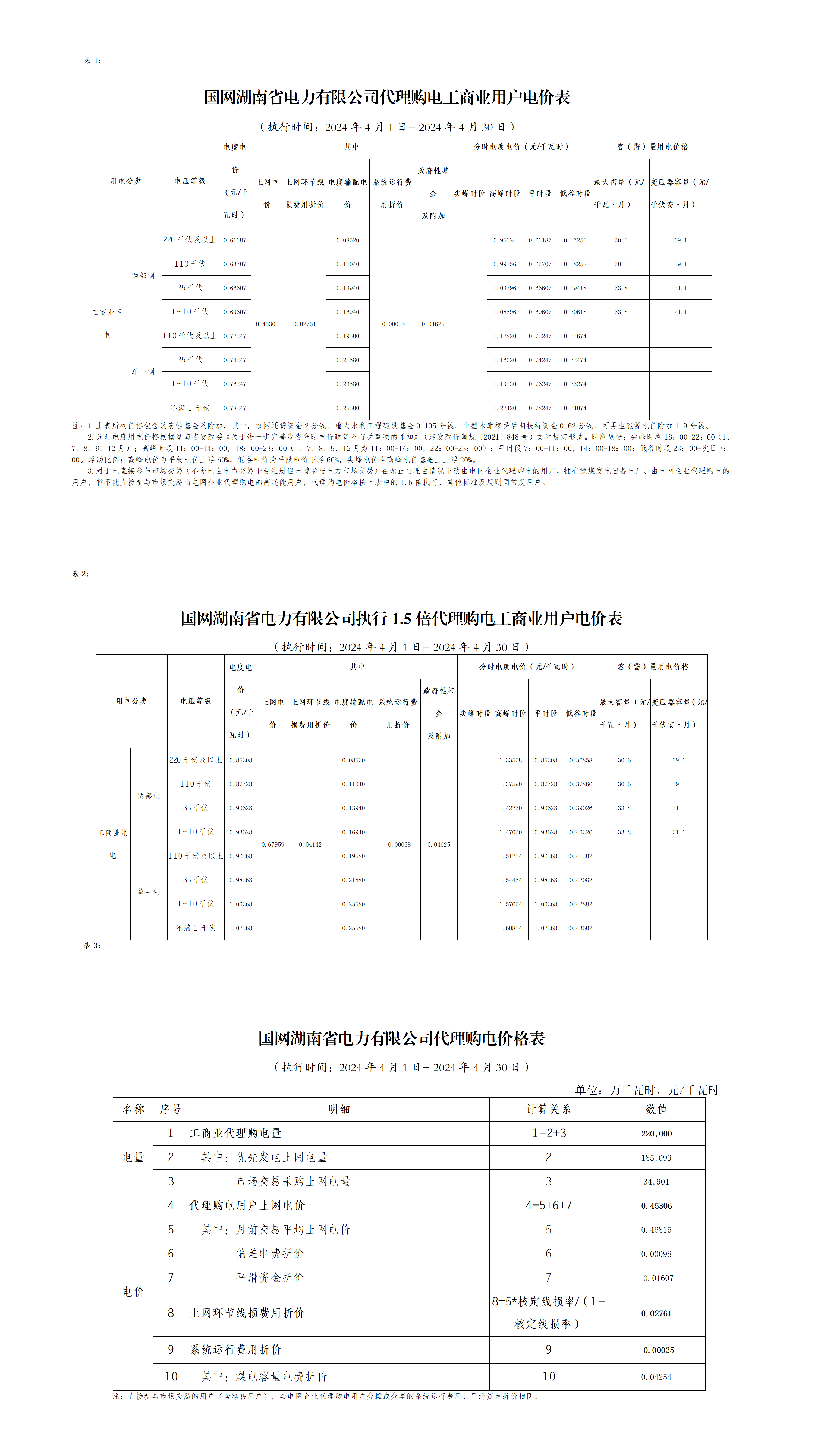 2024年4月份各省工商业电价(湖南、江西、福建、重庆、四川)