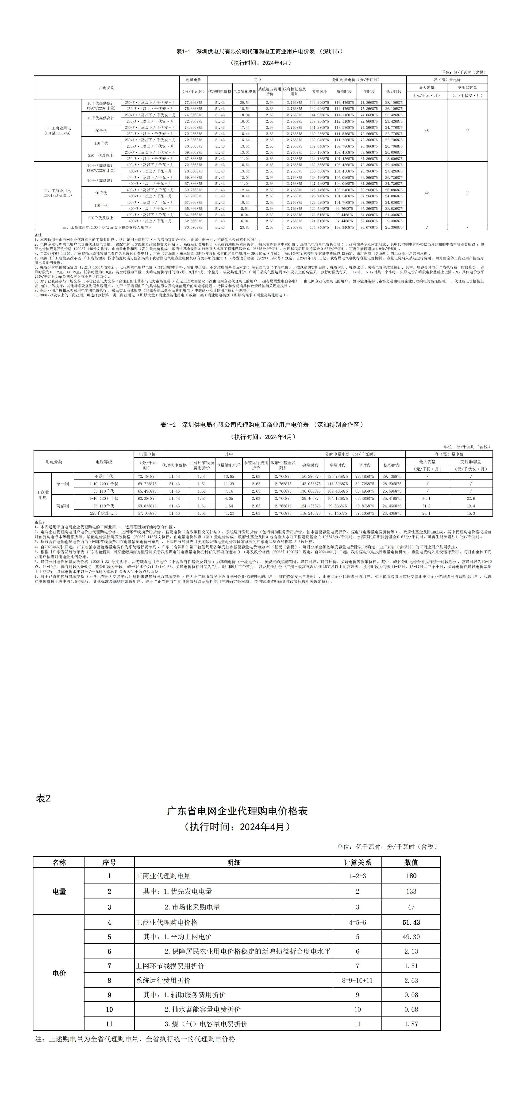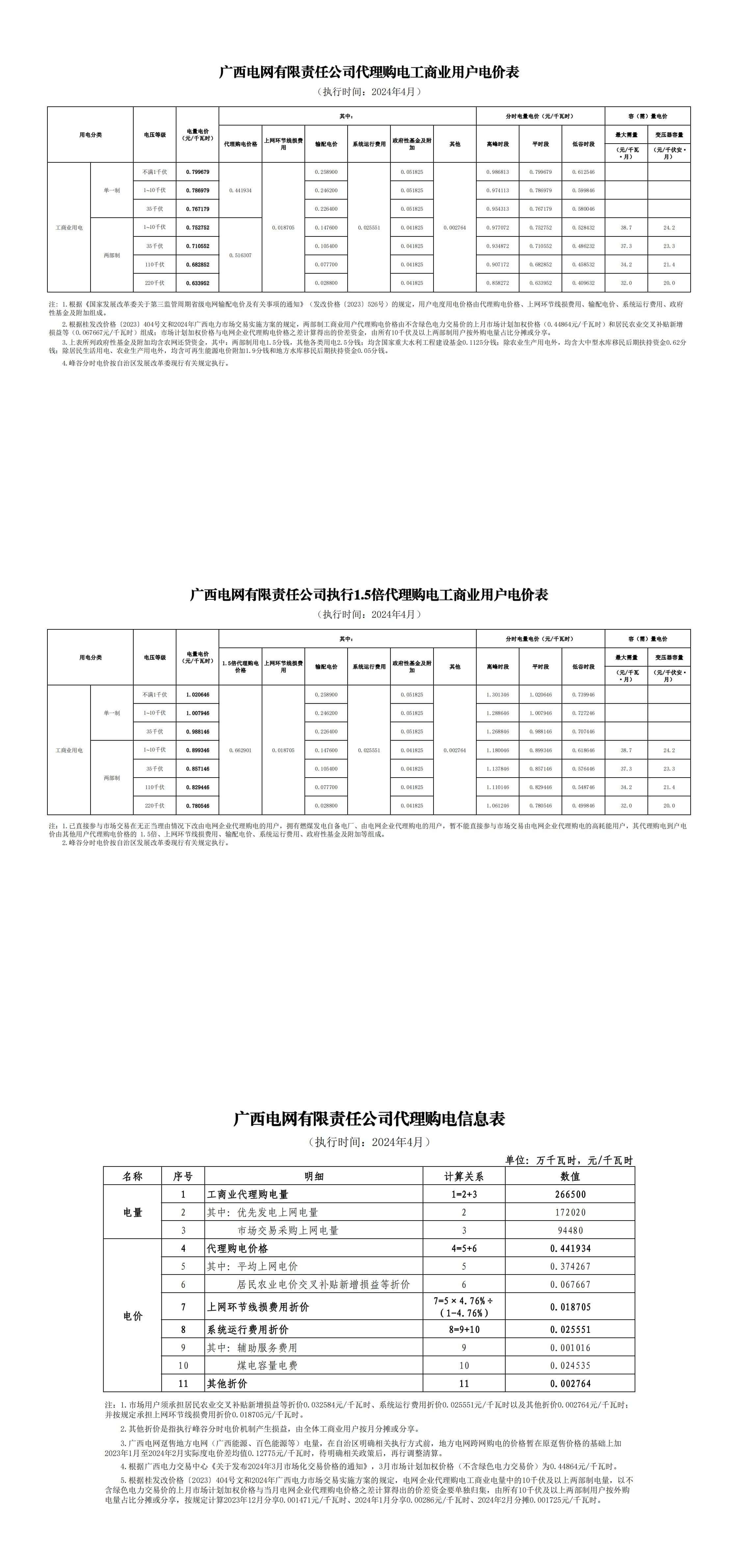 2024年4月份各省工商业电价(广东、深圳、广西、贵州、云南、海南)