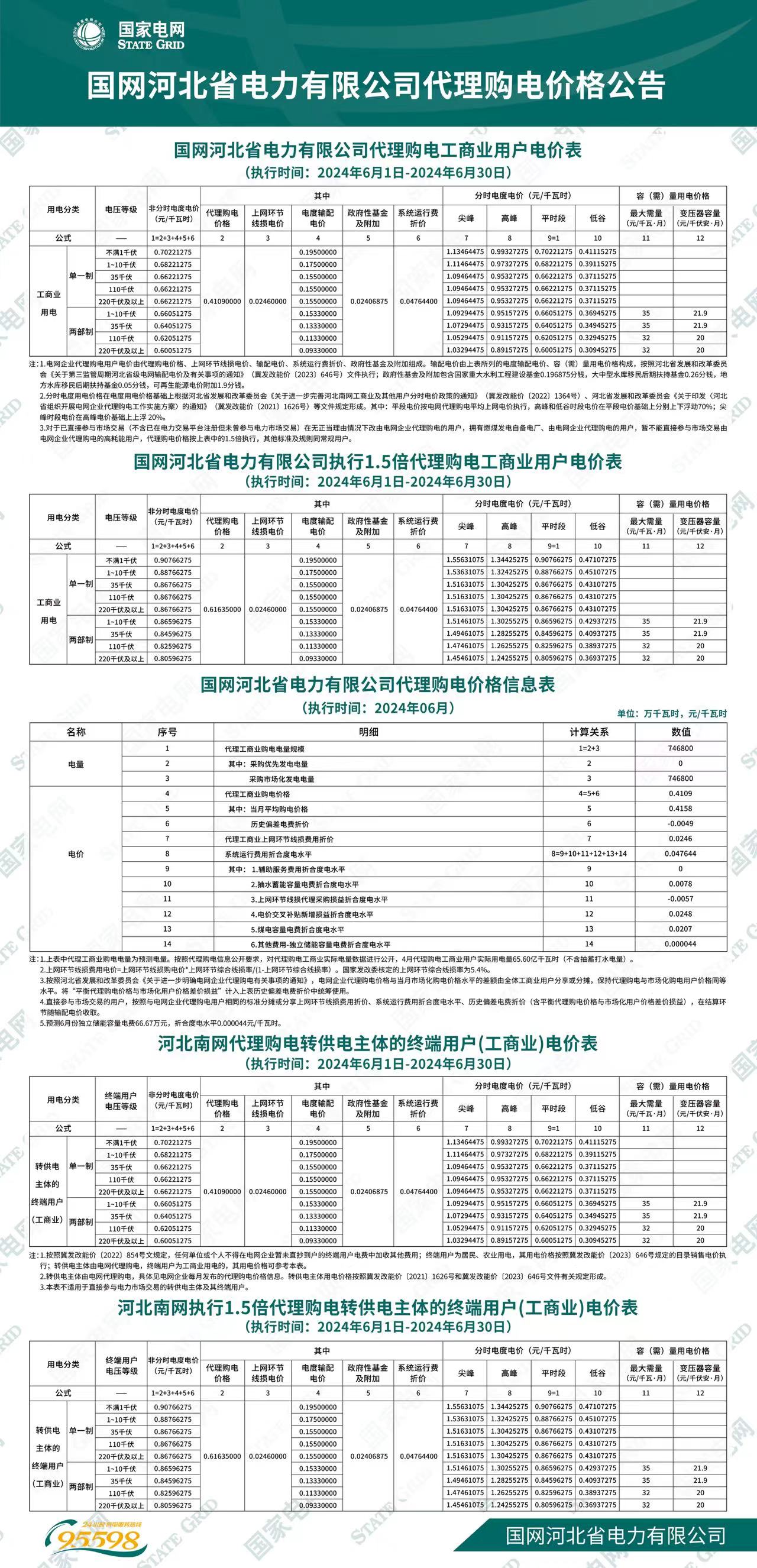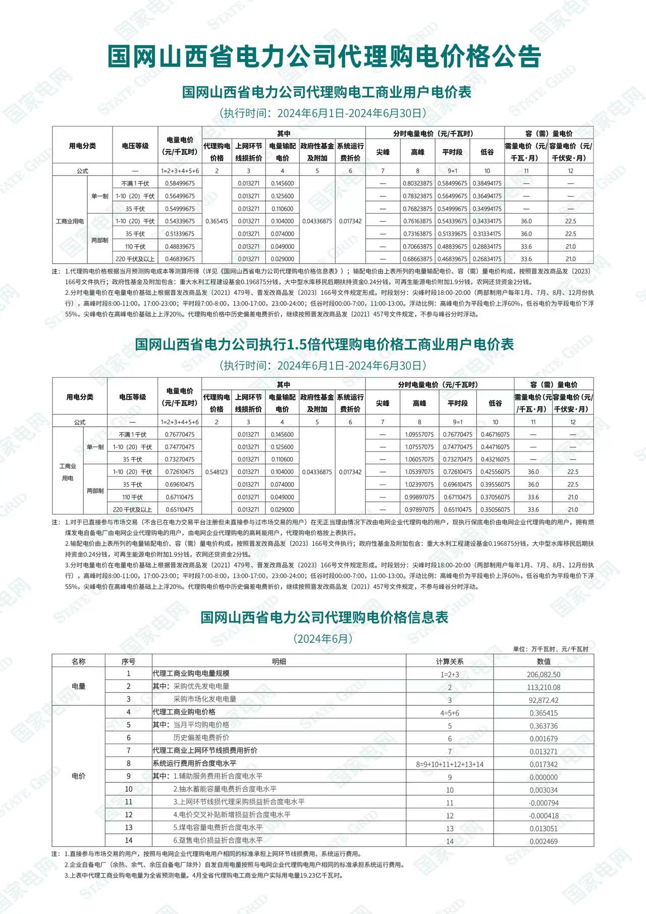 2024年6月份各省工商业电价(北京、天津、河北、山东、山西)
