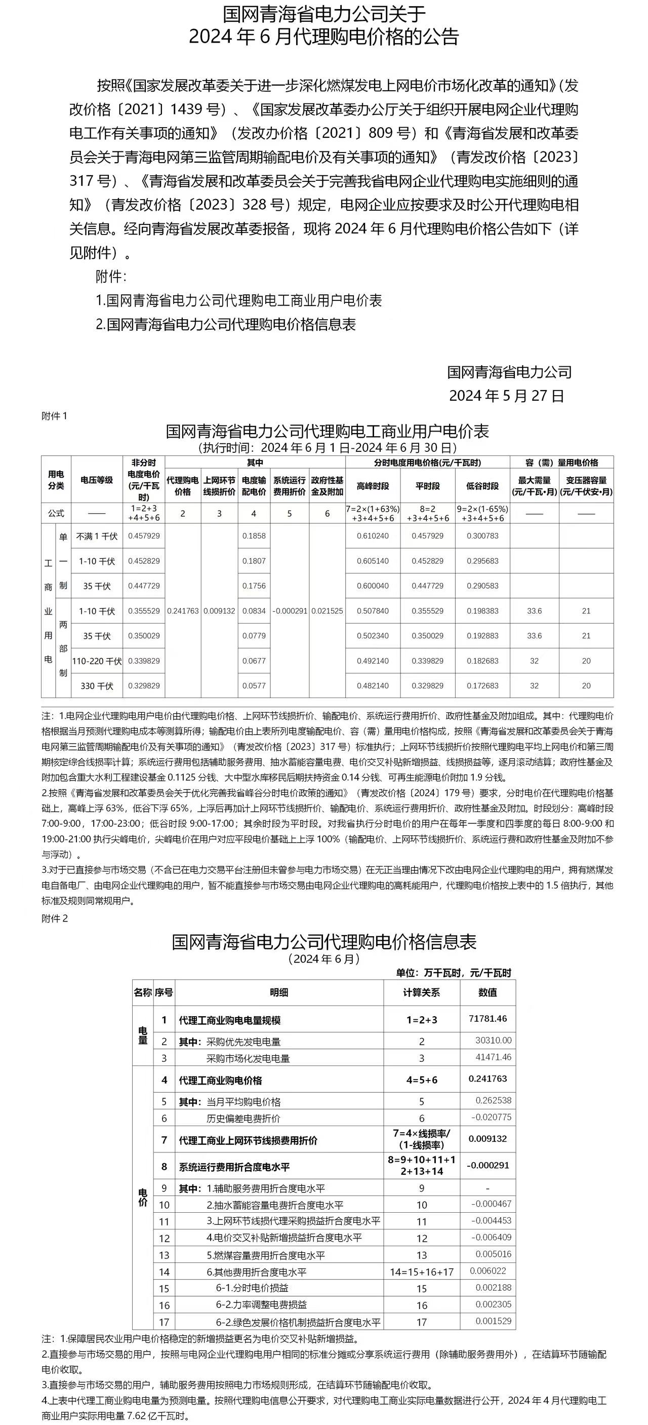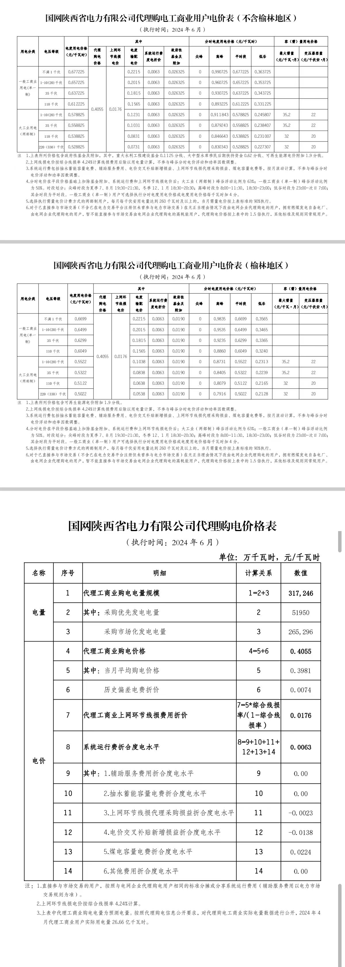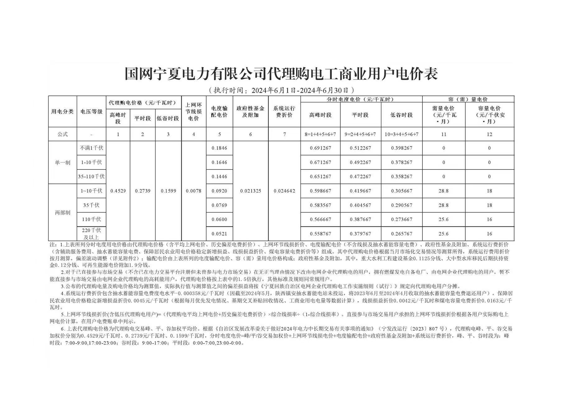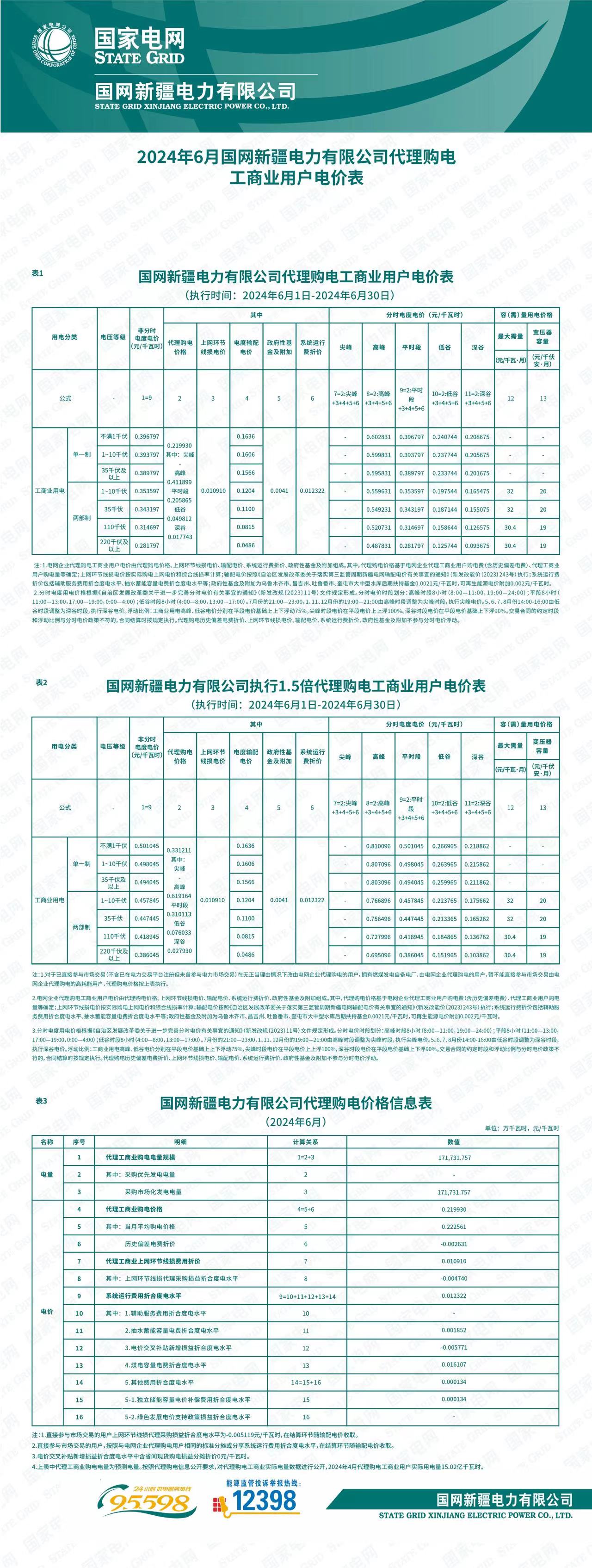 2024年6月份各省工商业电价(陕西、甘肃、宁夏、青海、新疆)