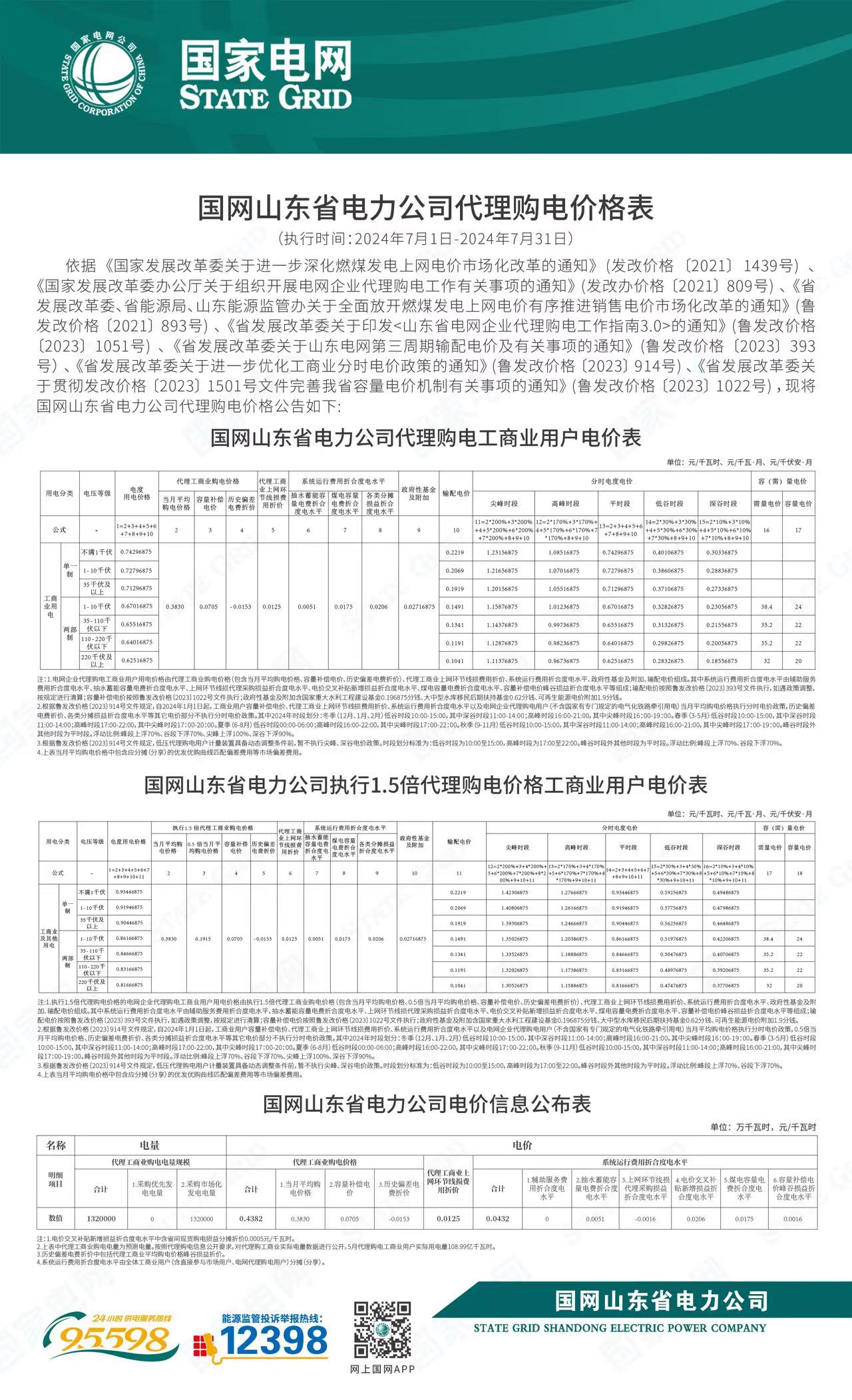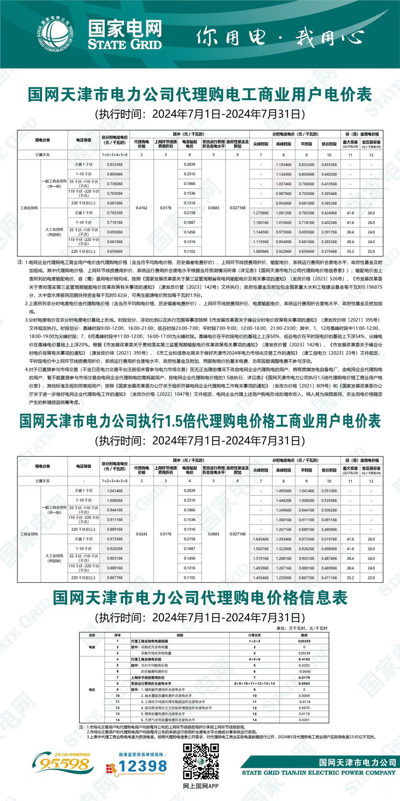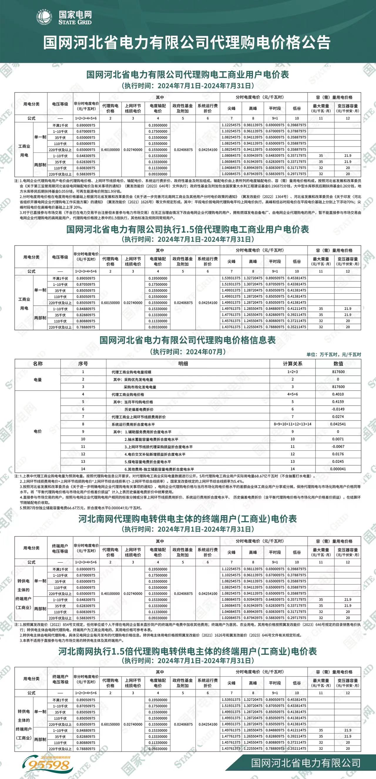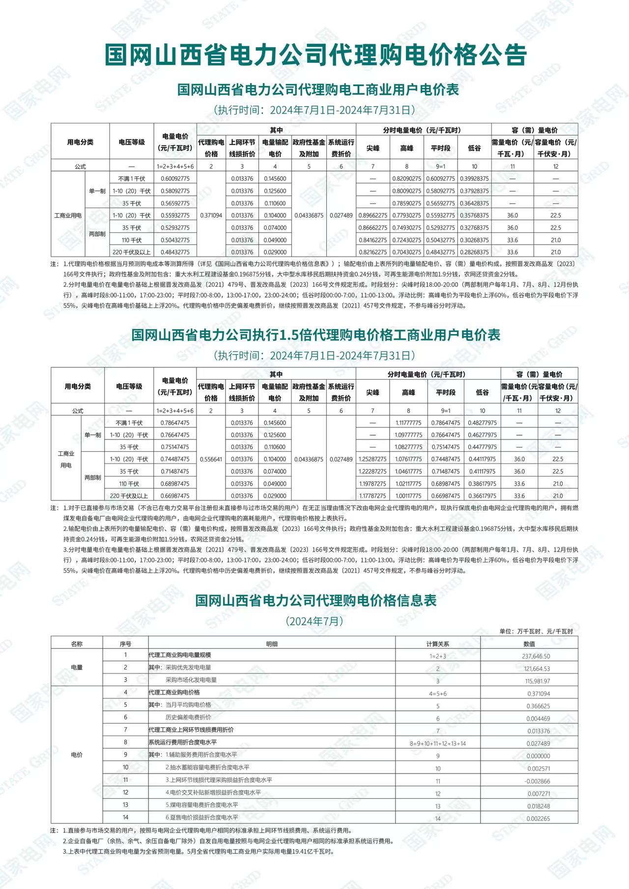 2024年7月份各省工商业电价(北京、天津、河北、山东、山西)