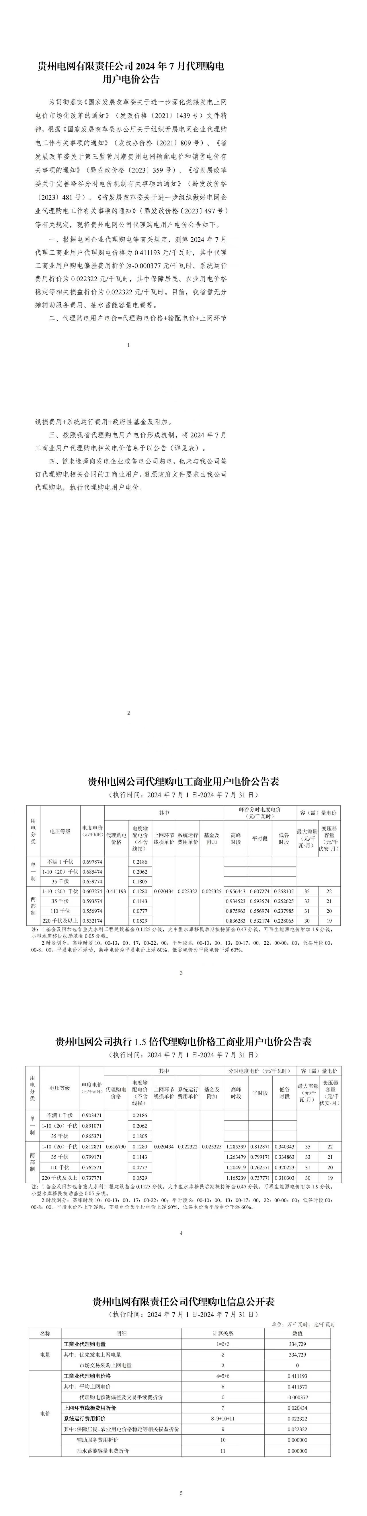 贵州省7月份代理购电工商业用户电价表