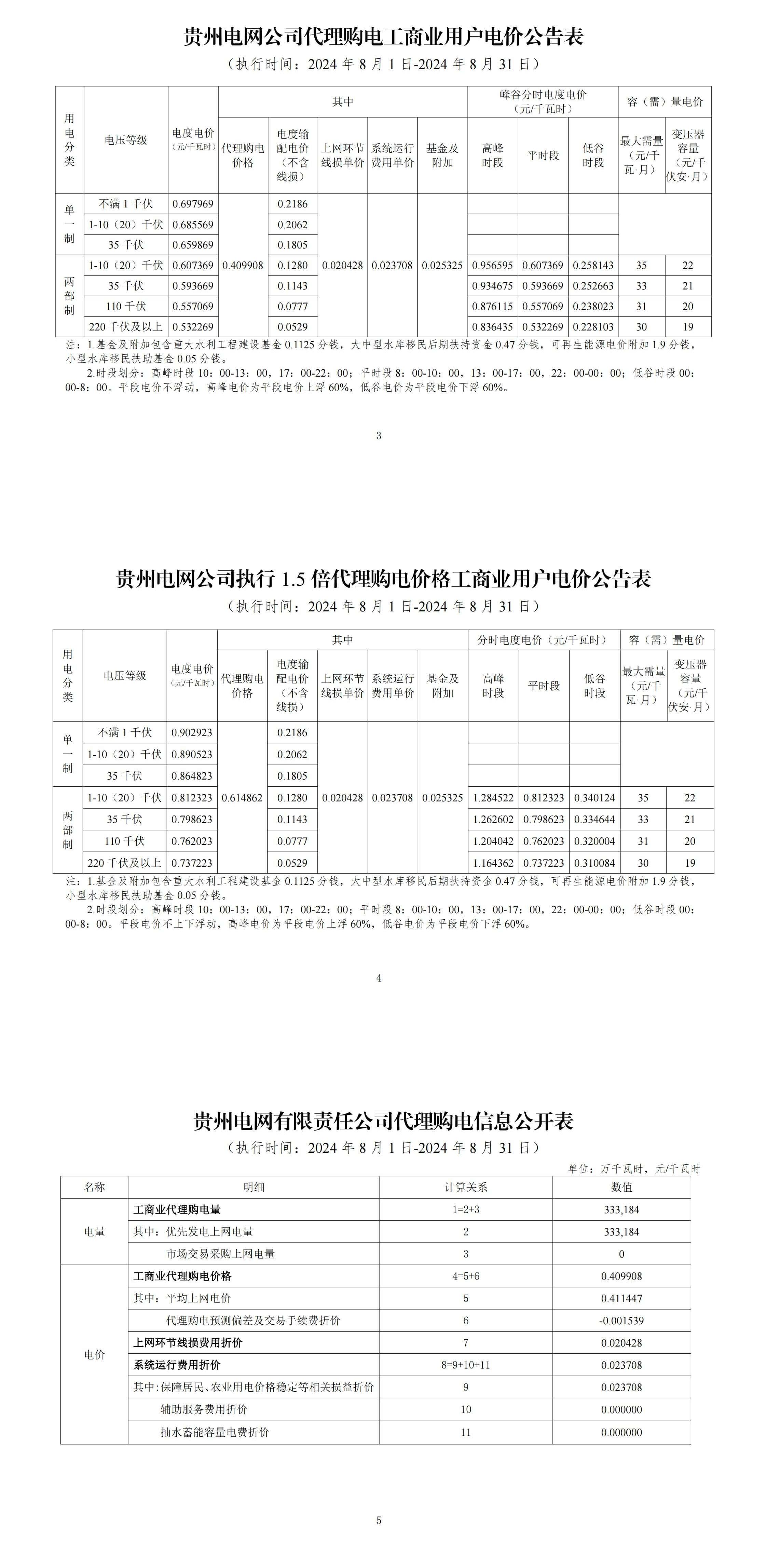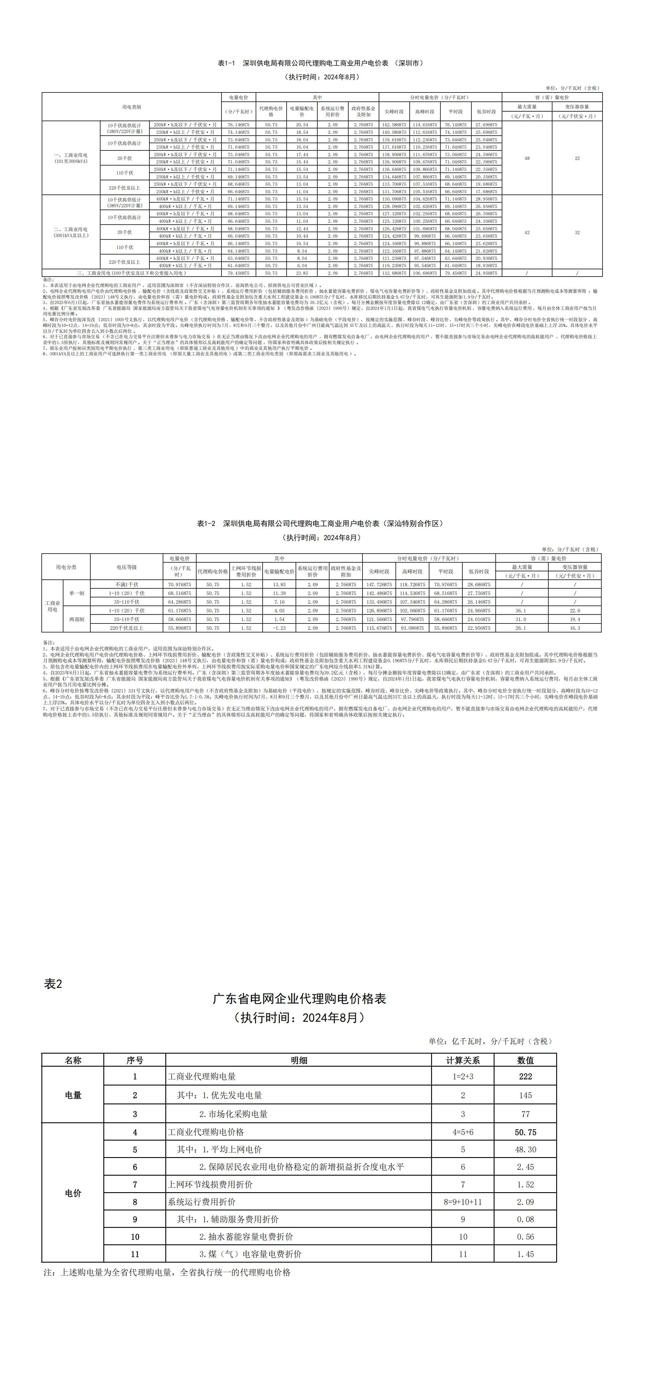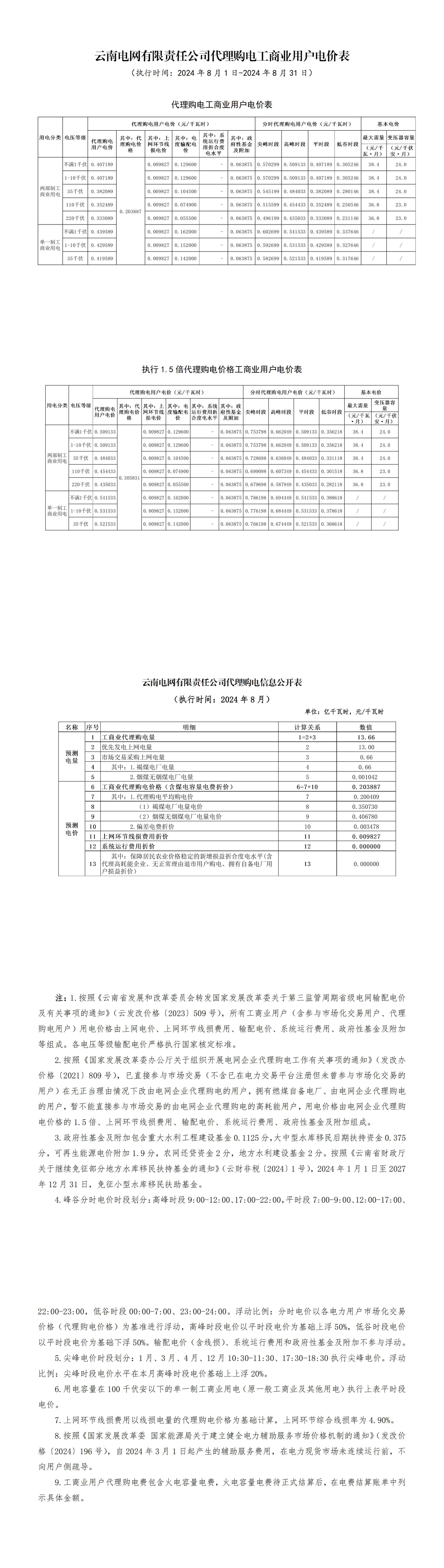 2024年8月份各省工商业电价(广东、深圳、广西、贵州、云南、海南)
