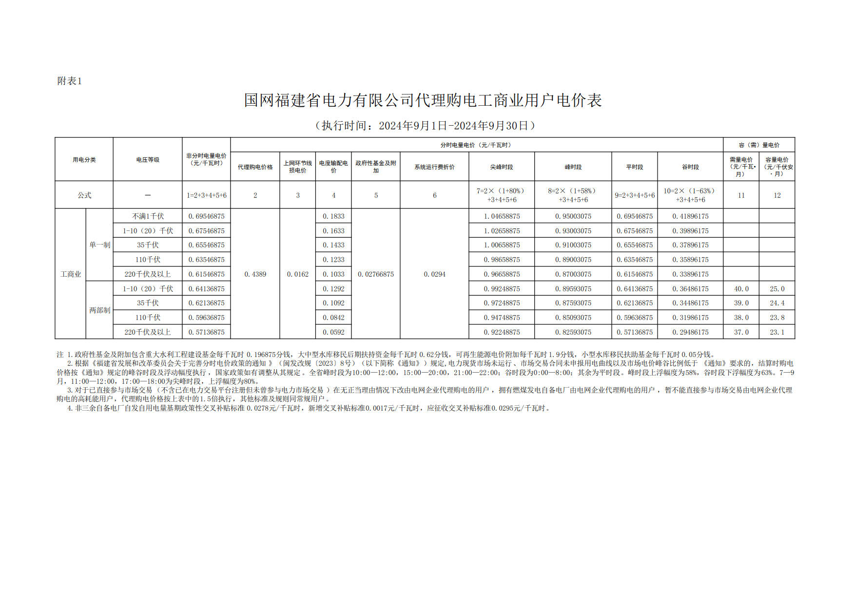 2024年9月份各省工商业电价(湖南、江西、福建、重庆、四川)