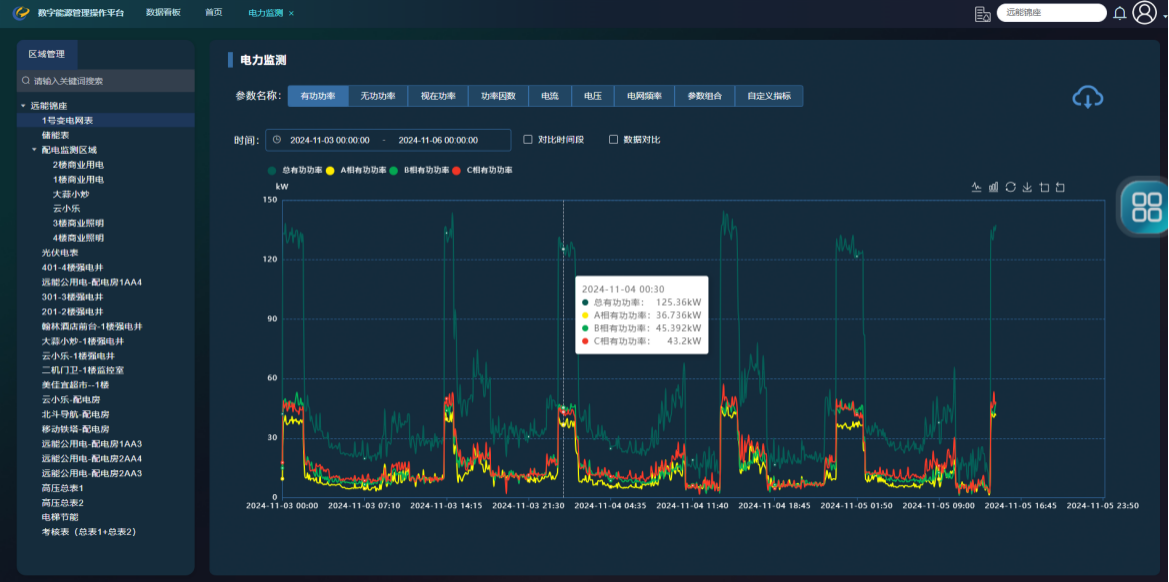 ·电力监测:系统监测电站站内电能数据,如有功功率、无功功率、视在功率、功率因素、电压、电流、电网频率曲线数据。通过实时电力监测,可以准确掌握电站的电力输出情况,确保电力供应的稳定性和可靠性。