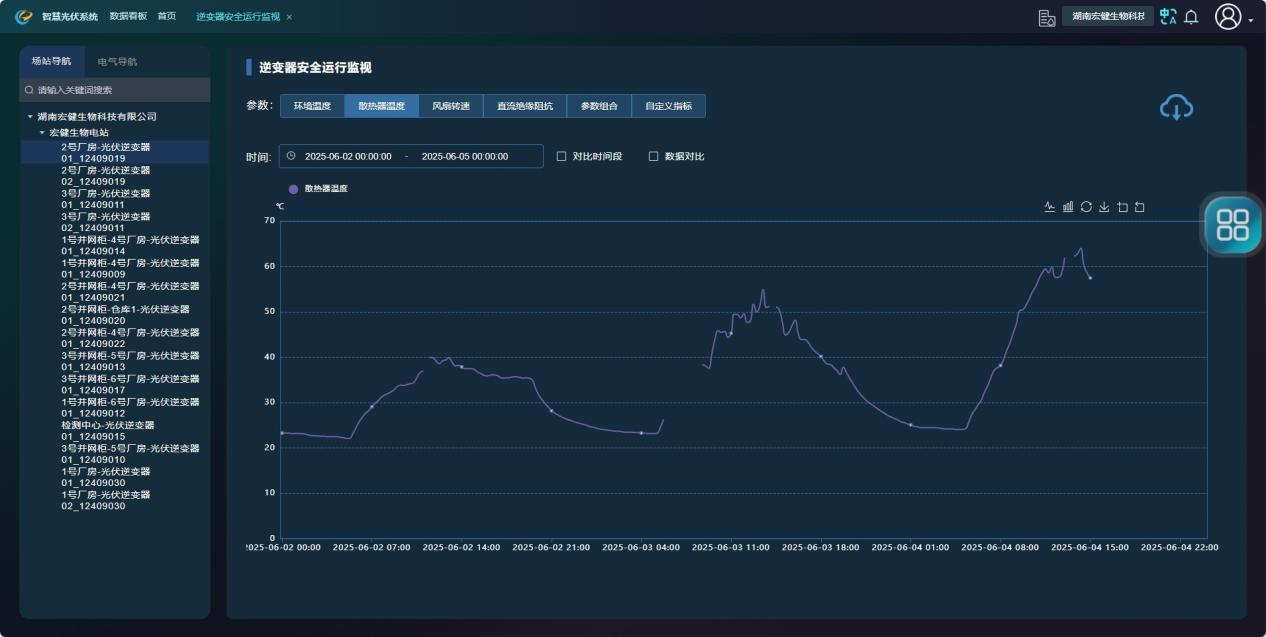 平台对电站设备进行实时运行监控,能够实时采集设备的运行数据,包括电压、电流、功率、温度等关键参数。通过对这些数据的实时监测和分析,平台可以及时发现设备的异常运行状态,并进行故障诊断。例如,当设备出现过载、过热或电压异常等情况时,平台能够迅速发出警报,提醒运维人员采取措施。