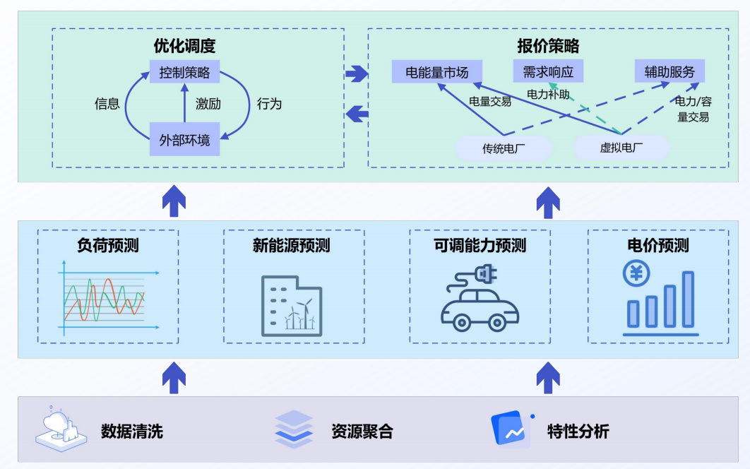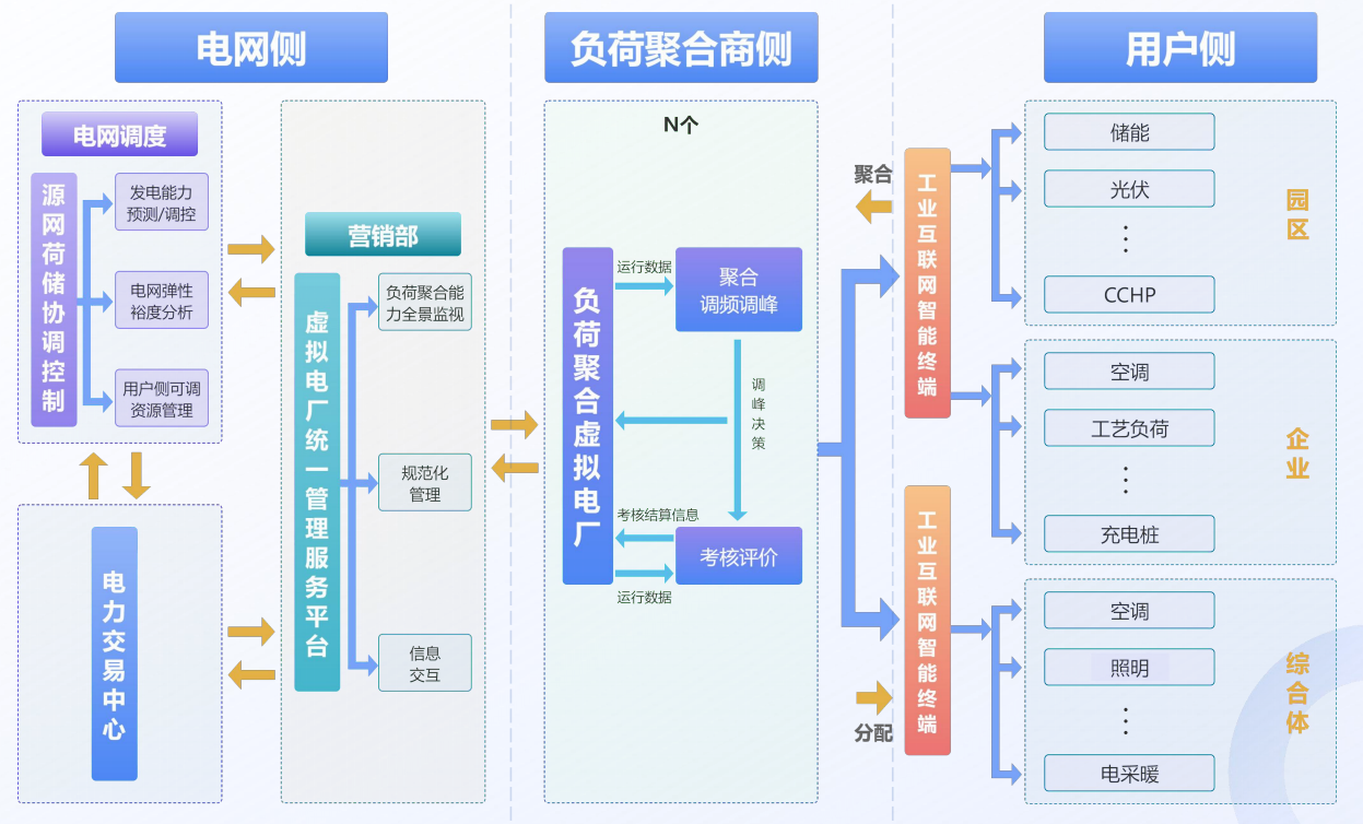 通过物联网 (IoT)与云计算技术,将分散的负荷、储能、新能源资源聚合为可控资源池,为电网运营商、聚合商及能源用户提供全链条数字化服务