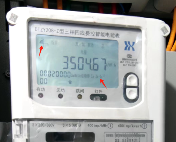 当电表在计量反向电量时,电表上会有相应的指示,一是电流会显示负号,二是屏幕左上角的四象限指示2或3象限(即P反向)。