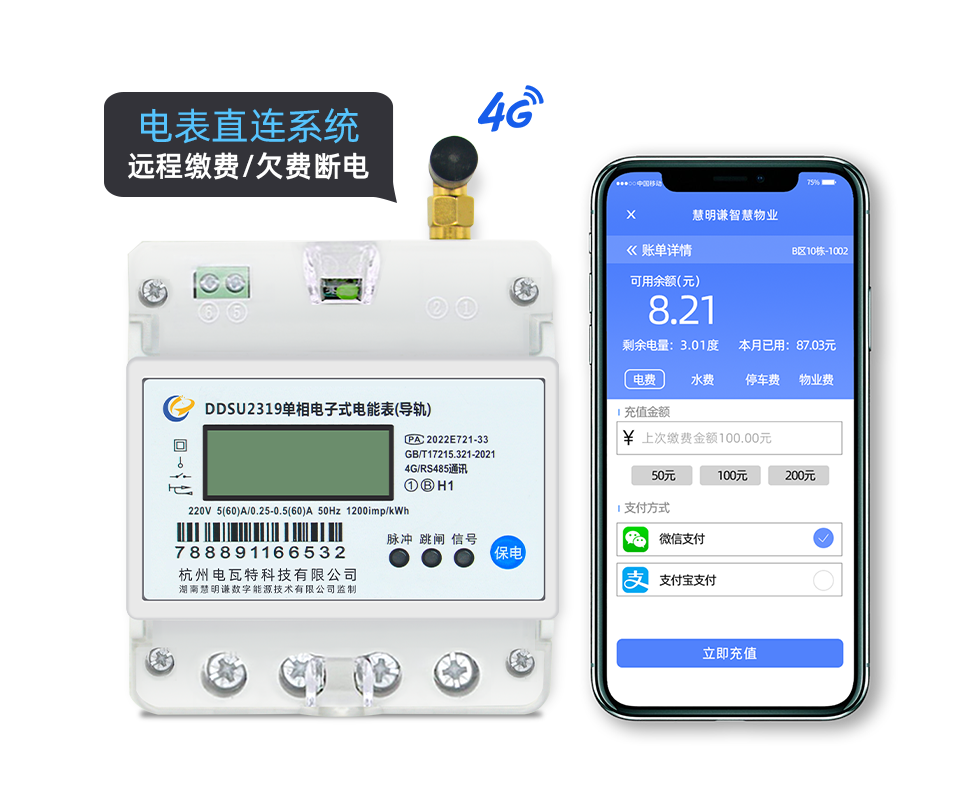 电瓦特DDSU2319单相4G通讯电子式导轨表