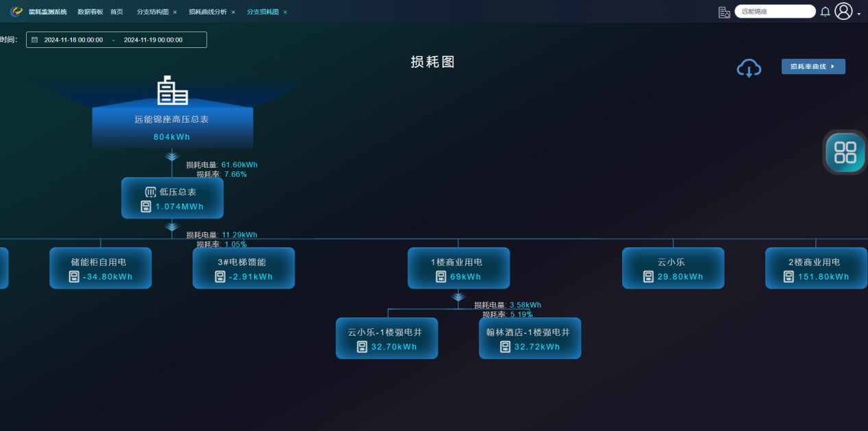 3) 根据能源拓扑图,构建损耗拓扑图,自动计算各级损耗,做小时级的损耗分析;