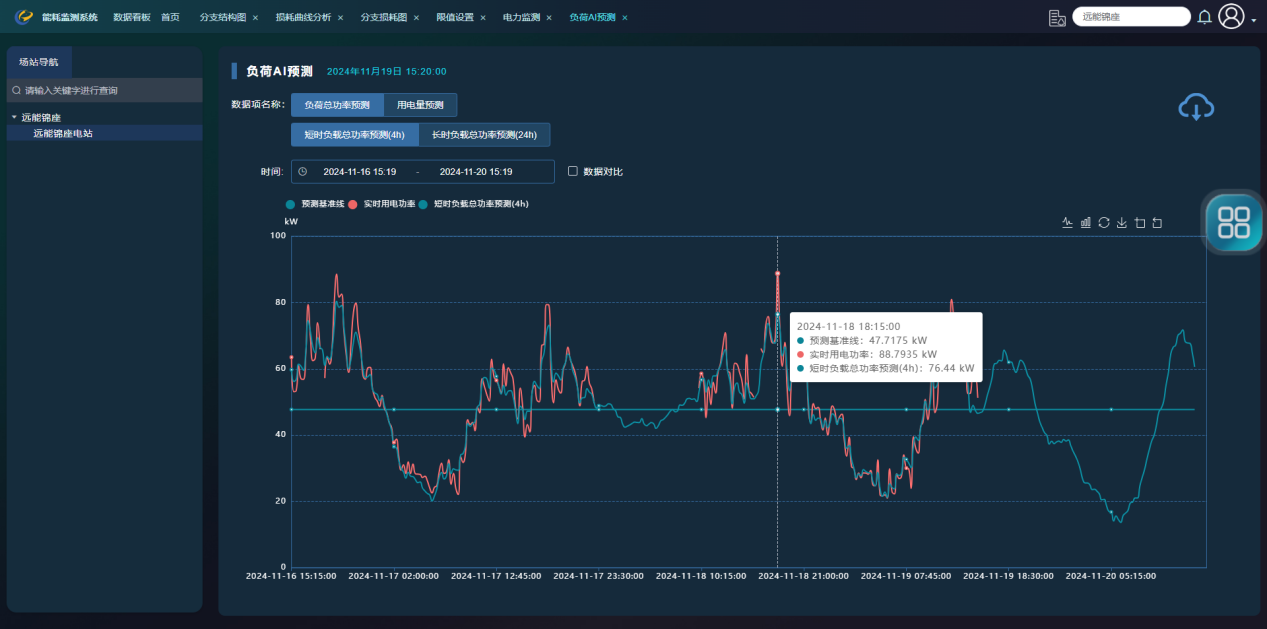 5) 构建AI预测中心,根据负荷用电情况,对供电区域的负荷做功率负荷预测与用量预测;