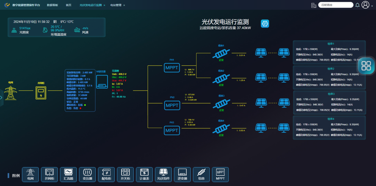 1) 光伏和储能电站实时监测,确保其安全稳定的运行;