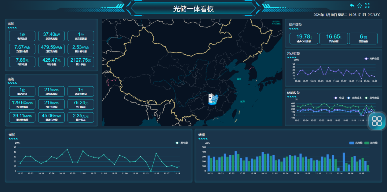 2) 光储一体看板,一图展示项目光伏和储能的收益情况;