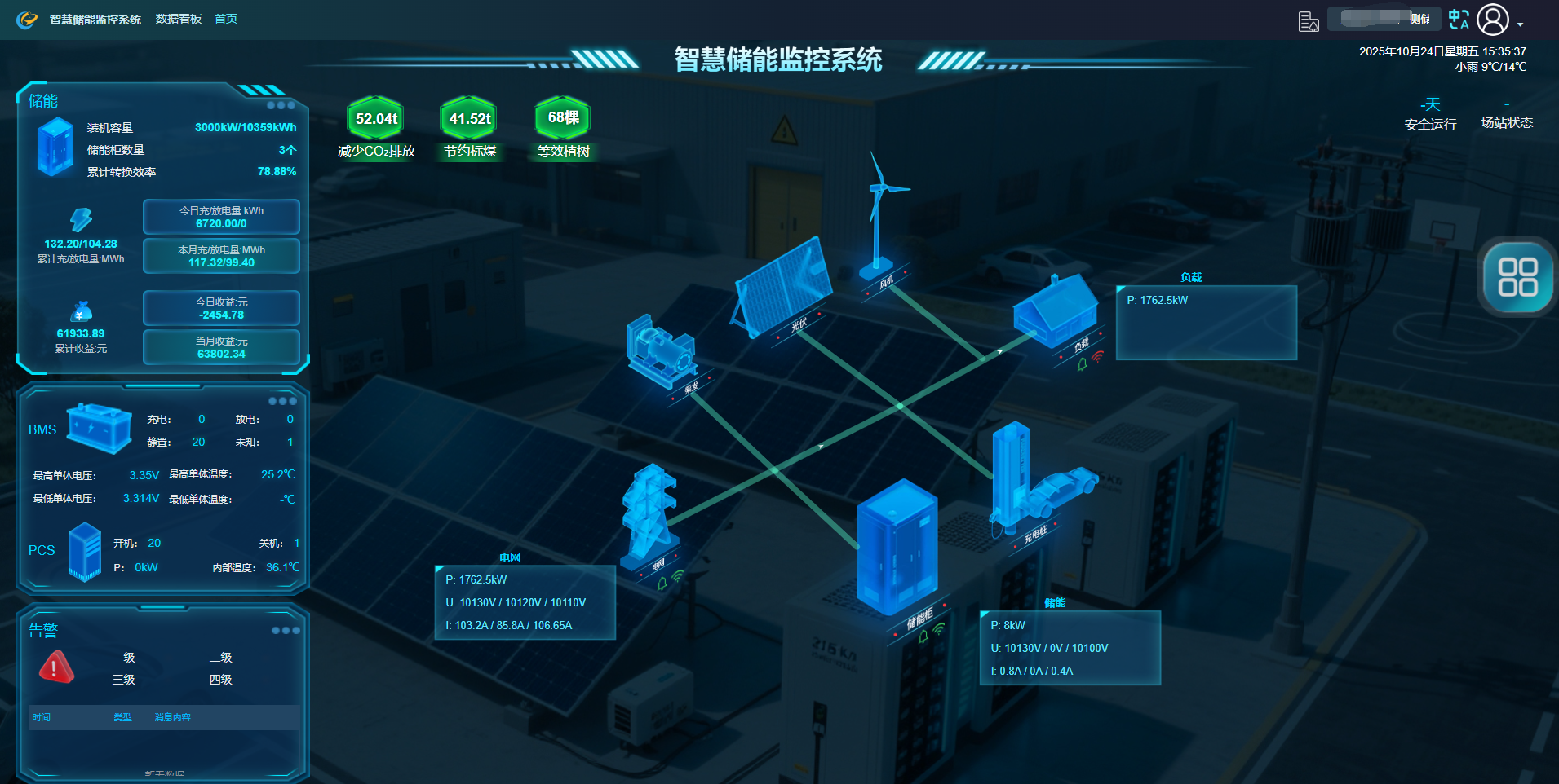运行期间,电站循环高频,综合效率保持高位;企业削峰显著,需量电费大幅下探;绿电替代化石能源,二氧化碳减排与植树造林同效,环保效益看得见。