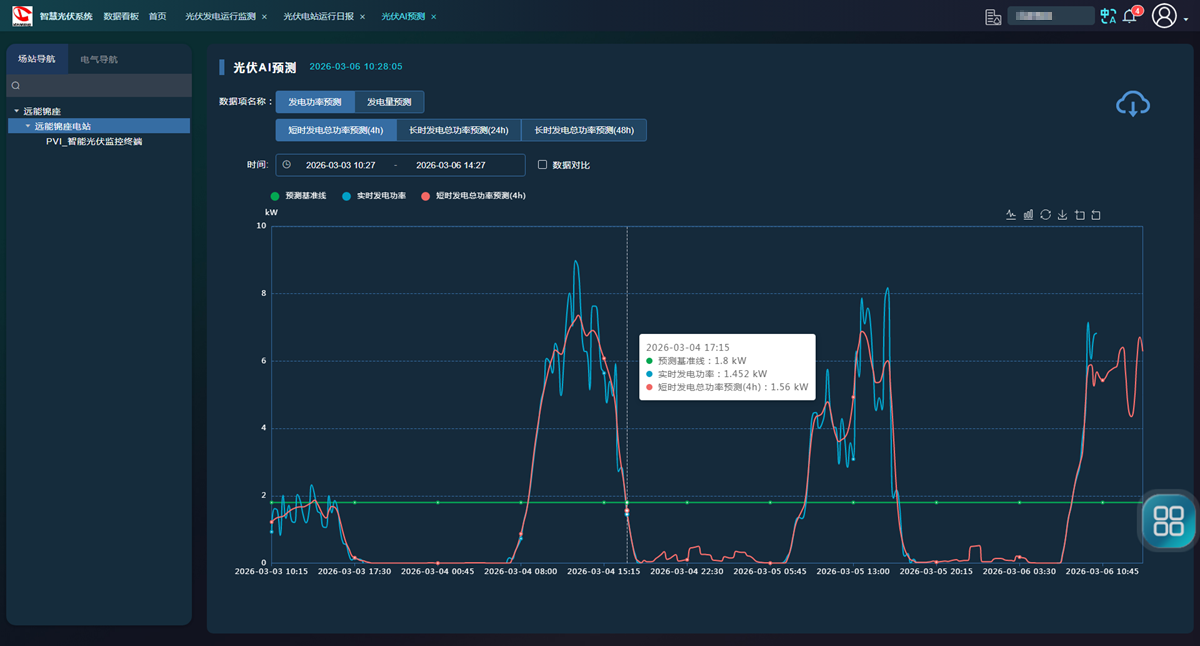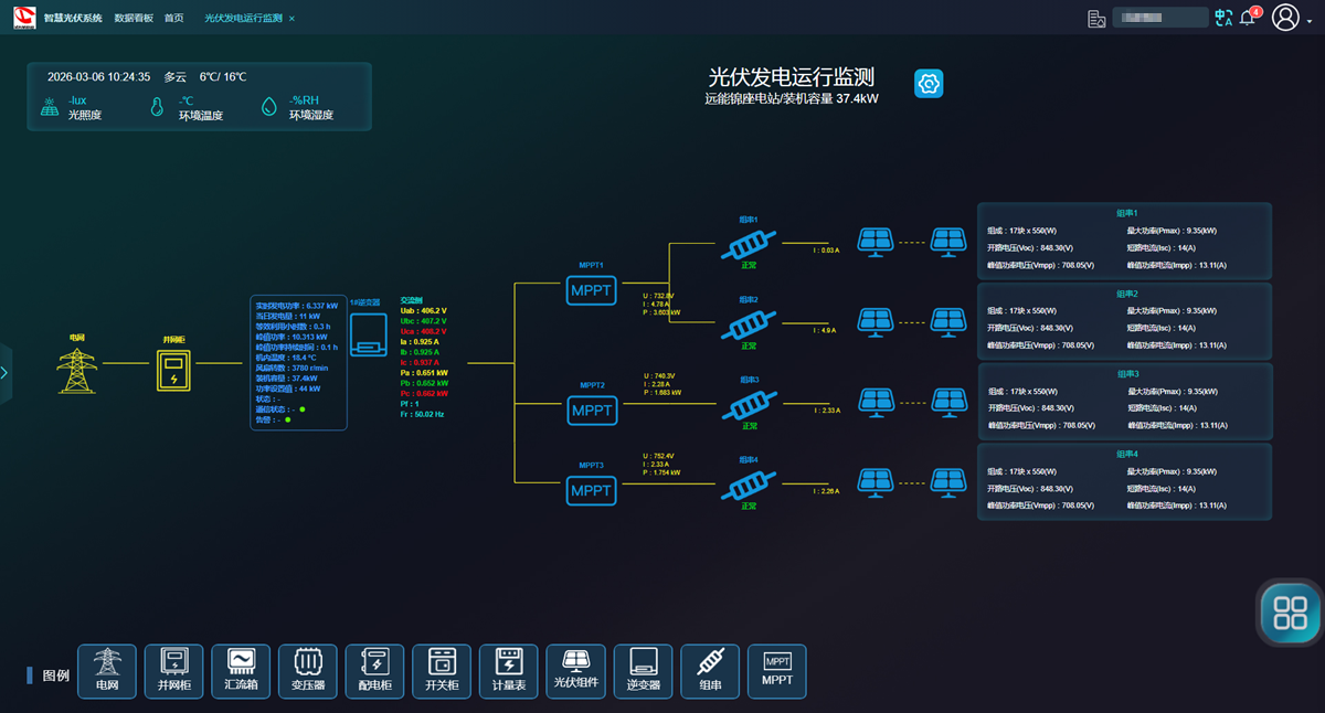 2.智能分析与预警:系统结合历史、气象和设备数据,预测运行趋势,识别故障风险,具备自动化故障报警功能,可及时通知运维人员处理异常。